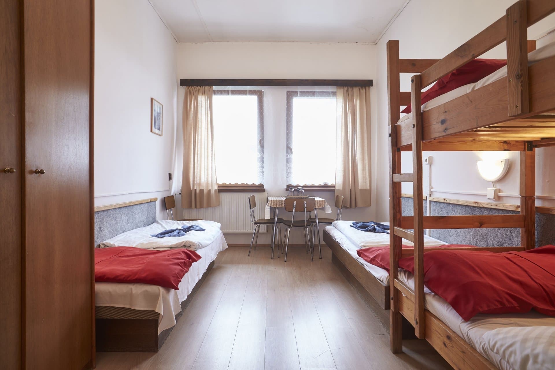 - k dispozici máme 1x 2-lůžkový, 4x 3-lůžkový a 3x 4-lůžkový pokoj (4-lůžkové pokoje jsou s patrovými lůžky)
