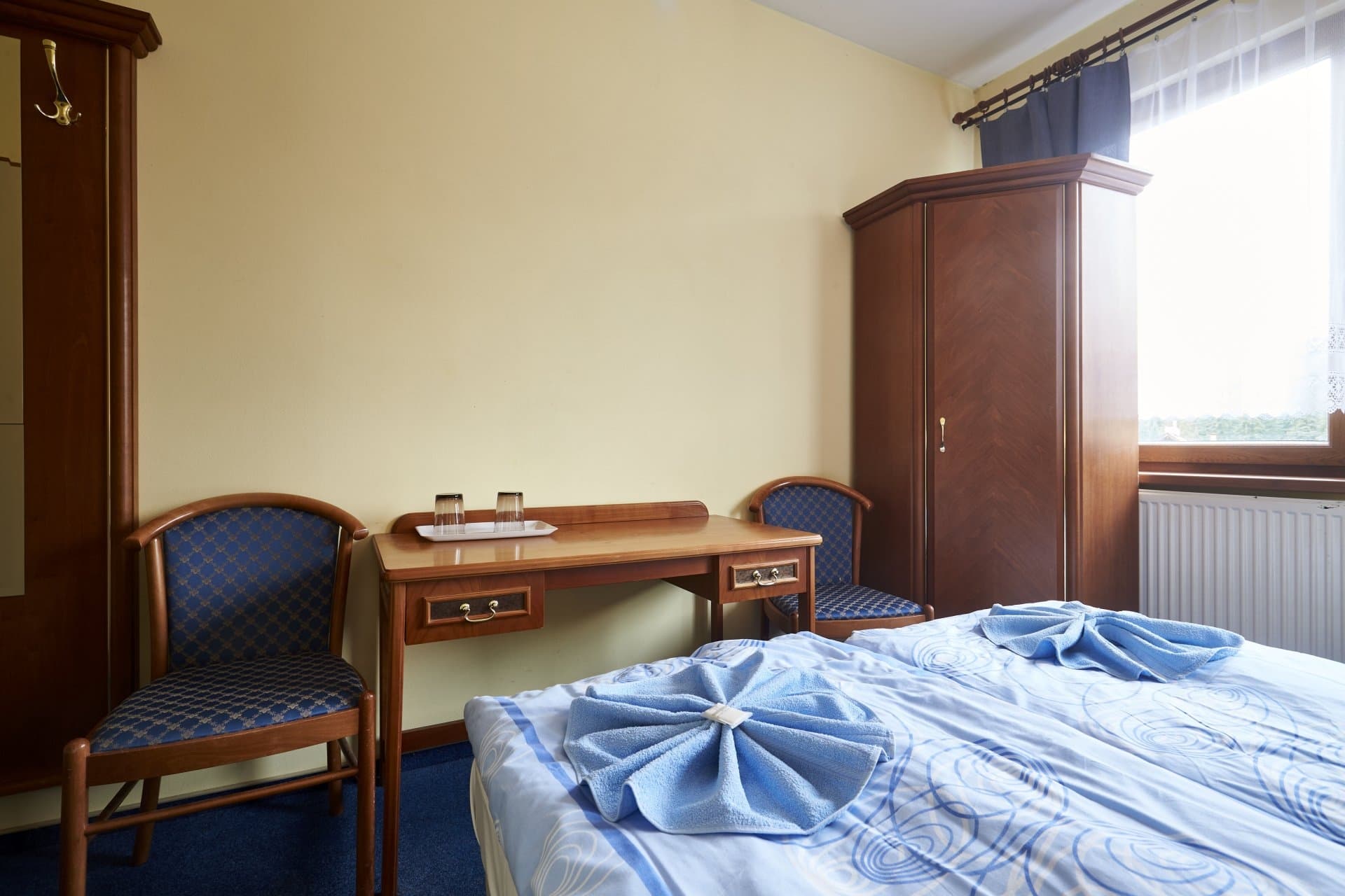 - součástí pokoje je šatní skříň, stolek s židlemi, ručníky