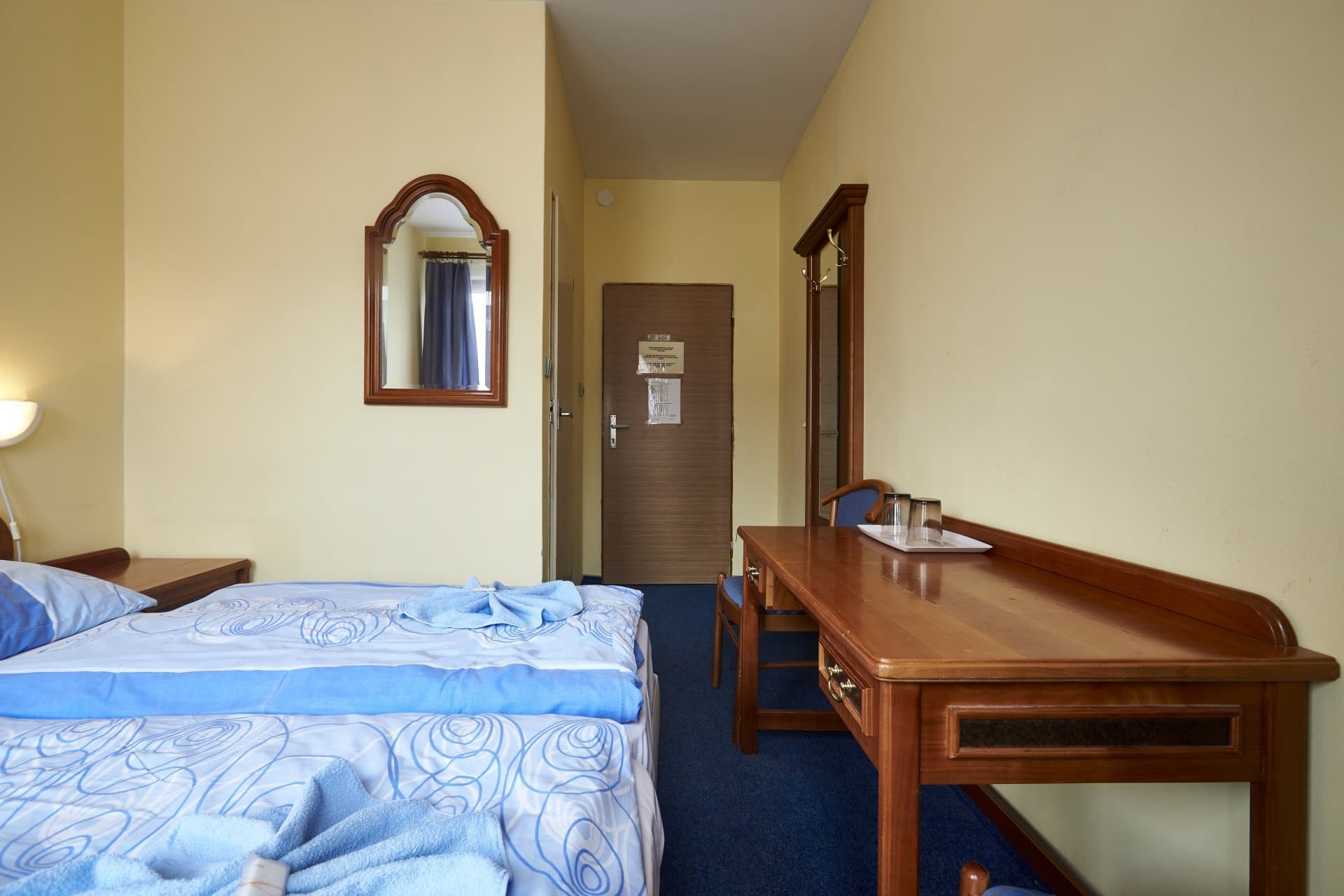 Pokoj v turistické ubytovně se společným sociálním zařízením na patře hotelu