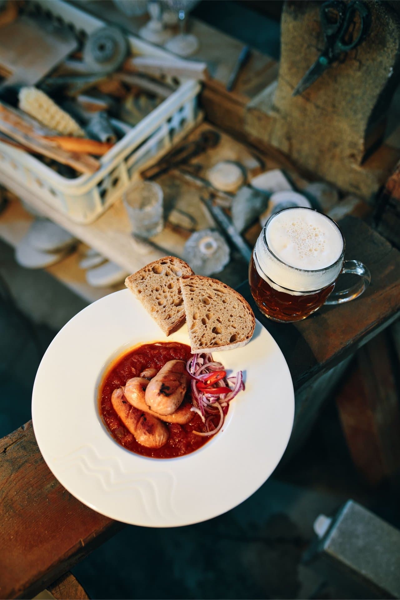 V jídelním lístku naleznete bohatý výběr tradičních českých jídel a různé pivní speciality. Oblíbené jsou především pečené buřty na černém pivu, domácí pivní sýr, pivovarská bašta a další. Při vaření piva je navíc možné ochutnat "sladinu", jednu z prvních fází piva. Je to vývar ze sladu a podává se buď čistá nebo s rumem. Jako zpestření jsou na stolech rozmístěny misky se sladem (naklíčeným a usušeným ječmenem), který se pojídá jako doplněk k pivu.