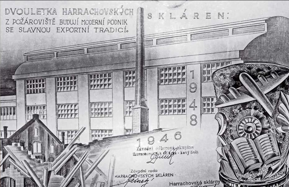 In early May 1945, Harrachov was liberated by the Soviet army. However, on January 28, 1946, a fire destroyed the smelting hall, offices, archive, and drawing room. Thanks to worker pressure and K. Gottwald‘s intervention, reconstruction began in summer 1946.